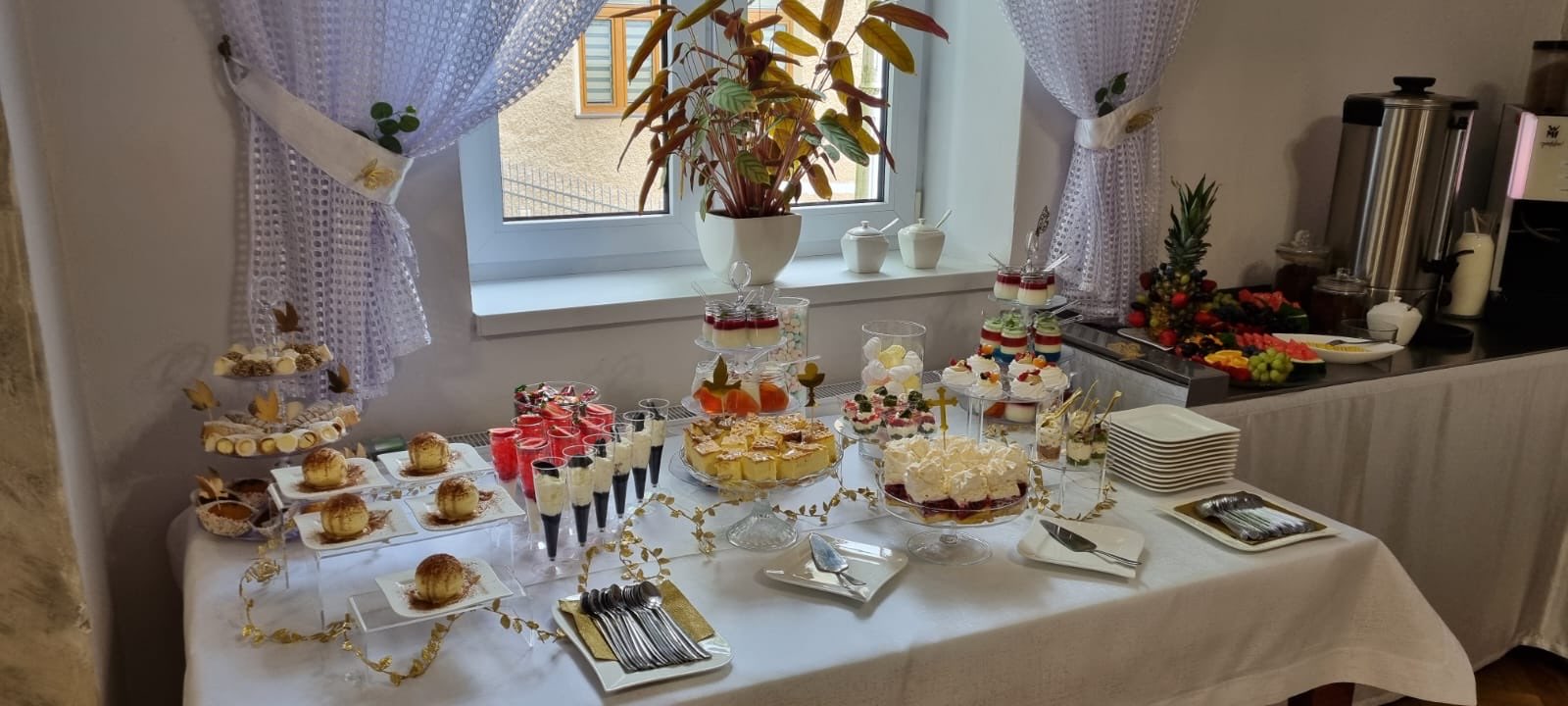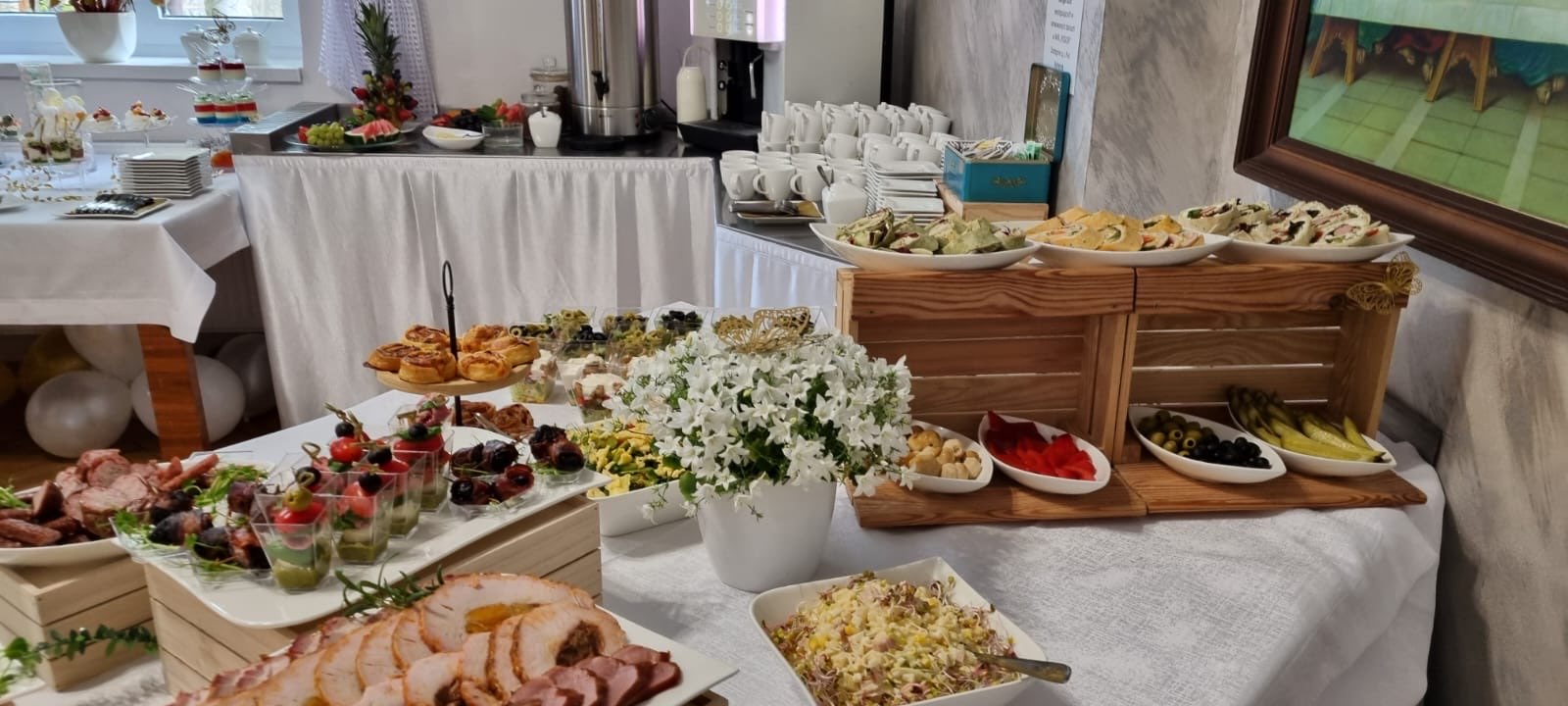 Zapewniamy kompleksową i profesjonalną obsługę każdego przyjęcia. Doświadczenie pozwala nam tworzyć niezapomnianą atmosferę podczas romantycznych wesel, rodzinnych uroczystości Pierwszej Komunii Świętej oraz chrzcin, dbając o każdy, nawet najdrobniejszy detal. Nasze stylowe wnętrza doskonale sprawdzą się również jako miejsce na prestiżowe bankiety, jubileusze oraz komfortowe spotkania firmowe czy szkolenia.